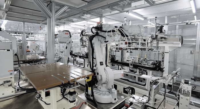 采用机器人替代人工,实现搬运和组装自动化,提升生产效率,并通过12个CCD视觉精准定位,保证贴合精度(精度可以达到0.1mm),始终把质量保证放在第一位。